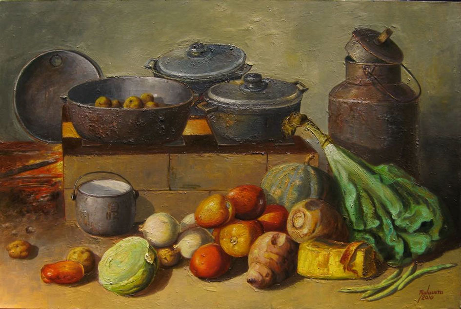 Isaias Malavera Lizarazo: «Cocina». Con diseño sugerente, utilizando productos normales de la alimentación, consigue una aceptable atmósfera culinaria.